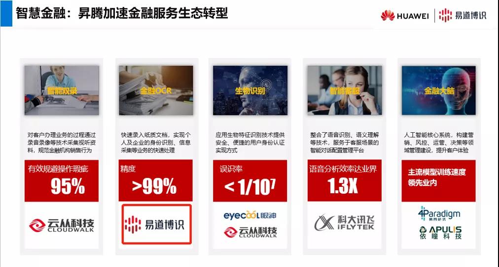 其中,在易道博識和華為昇騰合作開發的Atlas系列推理服務器中,易道博識的Deep OCR深度學習核心算法,為Atlas 800推理服務器提供了“每秒20張A4紙”量級的文本識別能力,因性能提高帶來的資源節省使得機房空間下降了60%,資源能耗下降了30%。