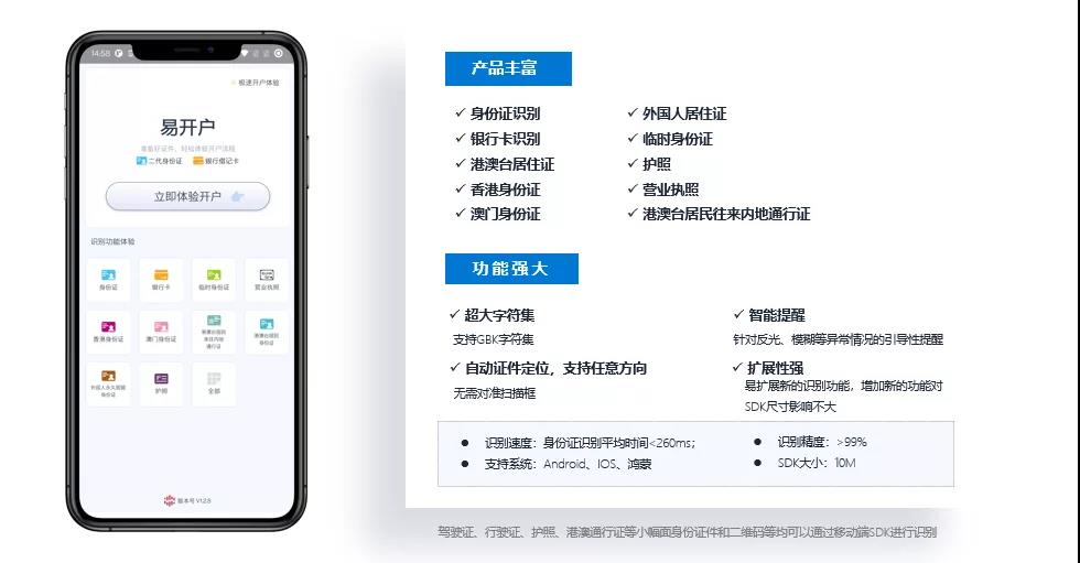 “DOM SDK的市場(chǎng)需求非常大,證券開戶,銀行開戶,投保理賠,汽車金融……等大量應(yīng)用卡證識(shí)別,且移動(dòng)端需求量極大的業(yè)務(wù),都是DOM SDK的應(yīng)用場(chǎng)景。這些場(chǎng)景對(duì)識(shí)別速度、識(shí)別精度的要求非常高,客戶容忍度低,注重用戶體驗(yàn),對(duì)產(chǎn)品的魯棒性要求很高。”