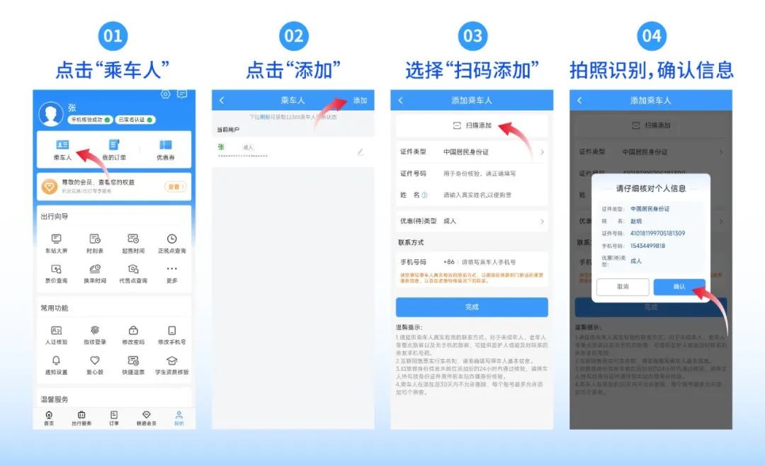 過去,用戶在添加乘車人信息時,需要針對每一位乘車人逐項填寫證件類型、證件號碼、姓名等多個信息要點。該過程極為冗長,平均每增加一位乘車人信息就需要幾分鐘的時間。同時,大量反復人工填寫也容易帶來各類誤輸入問題,進而可能影響購票結果。